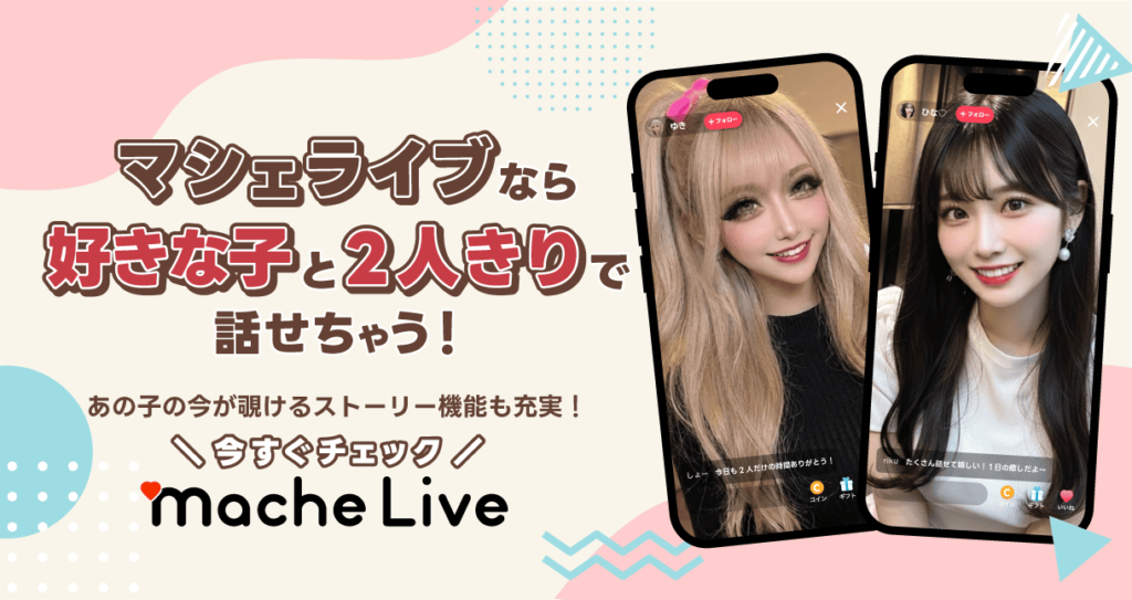 特にマシェライブは「女の子のクオリティが高い」と口コミでも評判。中にはタレントやモデル志望のライバーも多く、「推し」を見つけて応援する楽しみが生まれるのも魅力です。