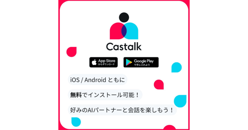 これらの専用機能により、Castalkは話すだけのAIアプリではなく、何度でも触れたくなる存在として楽しめます。