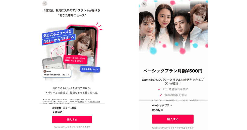 Castalkのアプリは無料でダウンロードでき、テキストチャットなどの一部機能についても無料で利用できます。