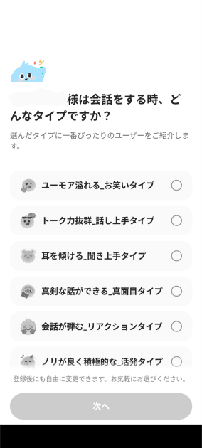そのあとに、会話のタイプを質問されます。当てはまるものを選んでください。