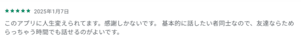しかし、ユーザーレビューでは「マッチングに時間がかかる」「ユーザーの年齢に上限がある」といった指摘も見られ、利用目的によっては満足度に差が出る可能性があります。