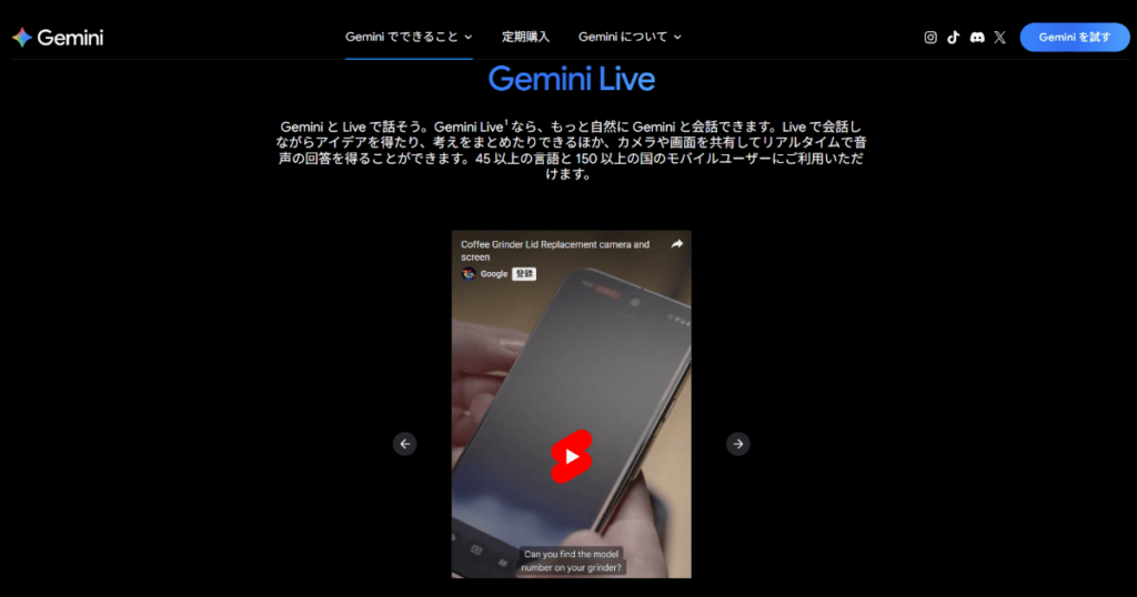 Gemini Liveは、音声でやり取りができる会話型AIです。文字を打つ必要がなく、話しかけるだけで会話ができます。