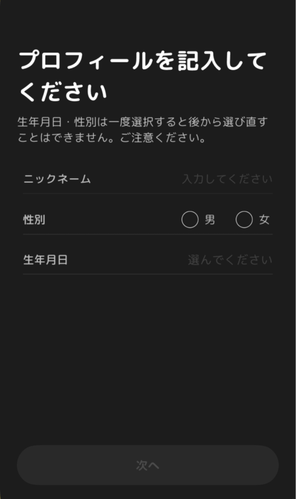 プロフィール設定はこれだけで完了です。