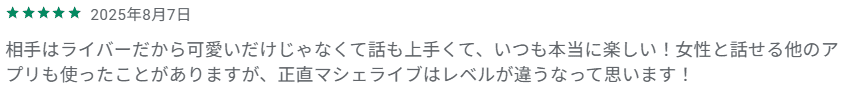「女性との会話に自信がない」「女性と話す機会が少ない」という悩みを感じているなら、マシェライブを使った会話練習がおすすめです。